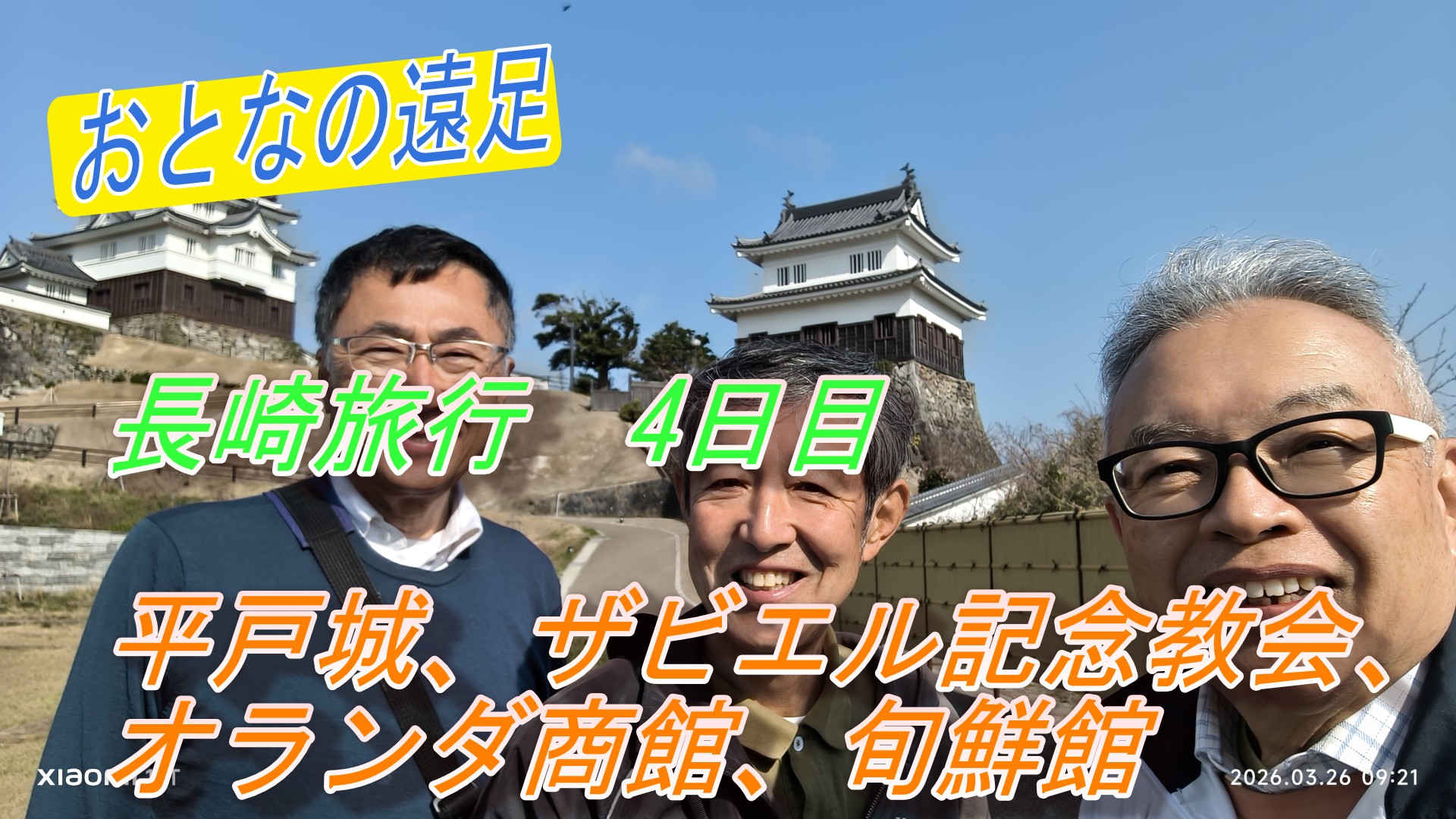 長崎旅行の4日目は平戸を観光します。平戸城、ザビエル記念教会、オランダ商館をめぐり、漁業組合町営の旬鮮館でひらめ定食をいただきます。 その後、ドライブで長崎空港に戻り、無事4日間の旅を終えることができました。