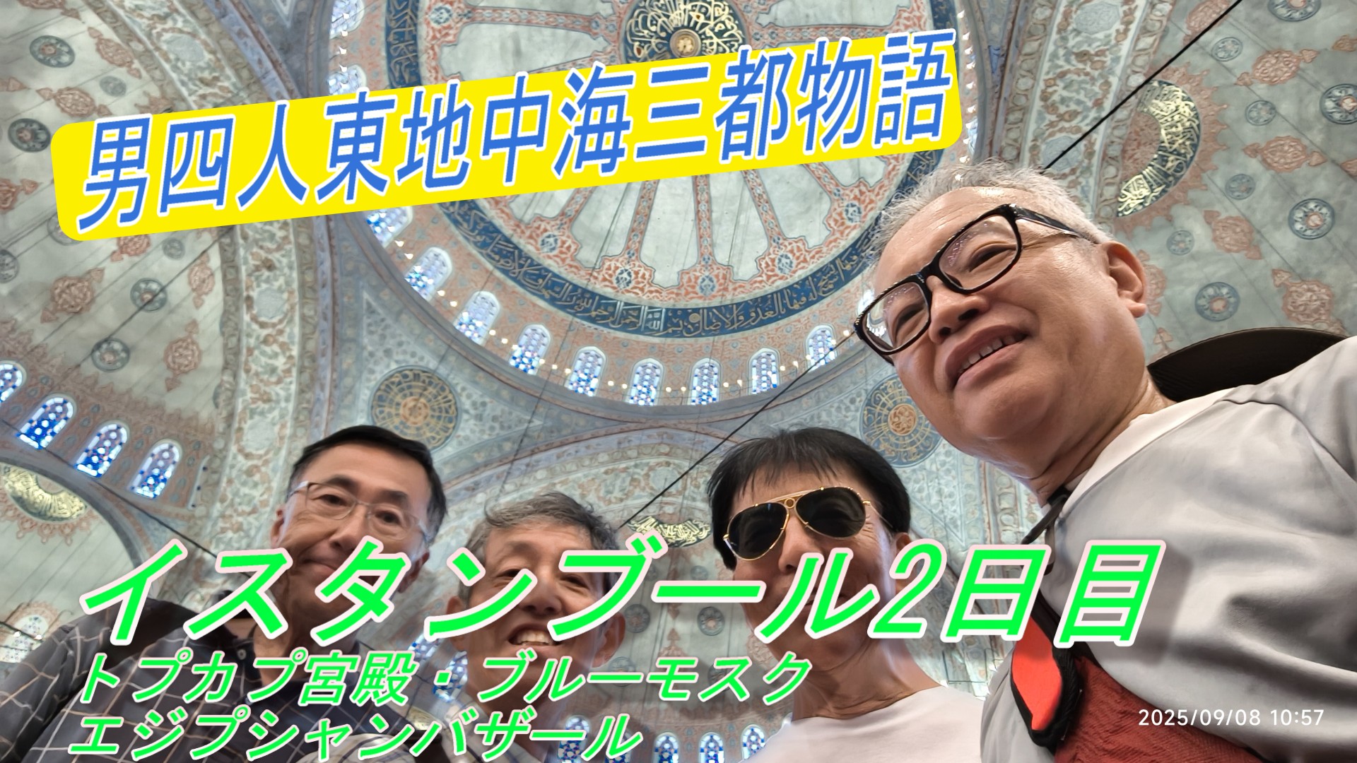 男四人東地中海三都物語の7日目はイスタンブール2日目です。 トプカプ宮殿、ブルーモスク、エジプシャンバザール、リュステム・パシャ・ジャーミィを回ります。途中、ホテルで昼休みをとりながら、19000歩も歩きました。