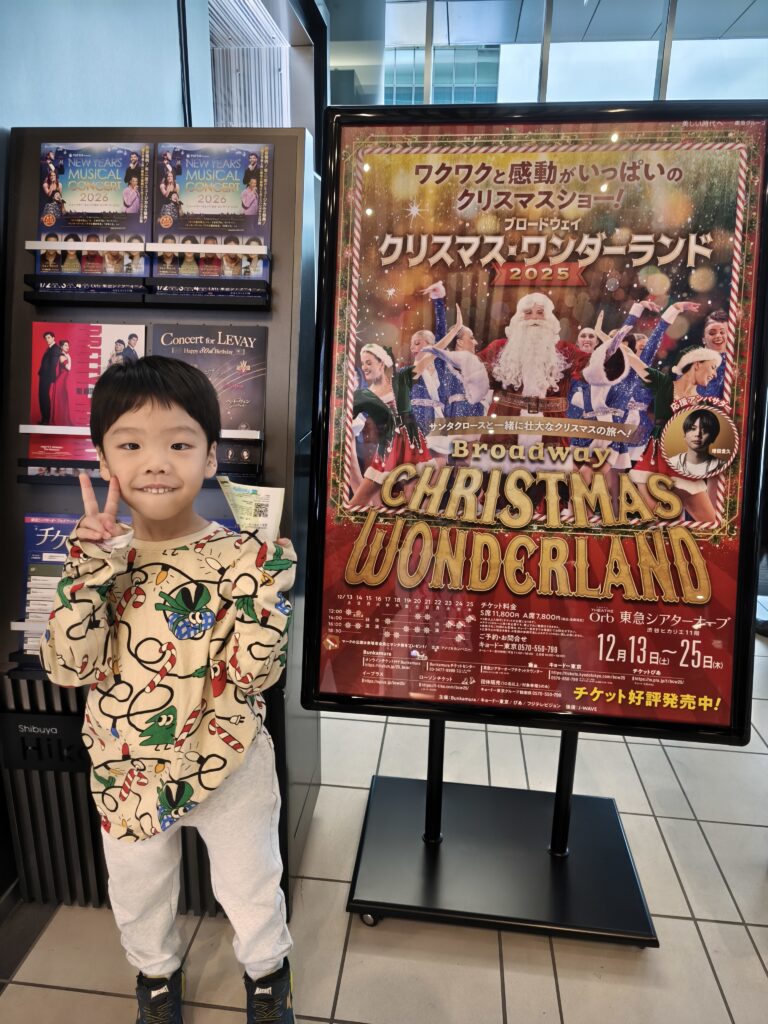 ブロードウエイのミュージカル俳優が出演するクリスマスワンダーランドを渋谷ヒカリエ11Fで楽しみました。その後、同じ階のシアターテーブルでイタリアンを楽しみました。