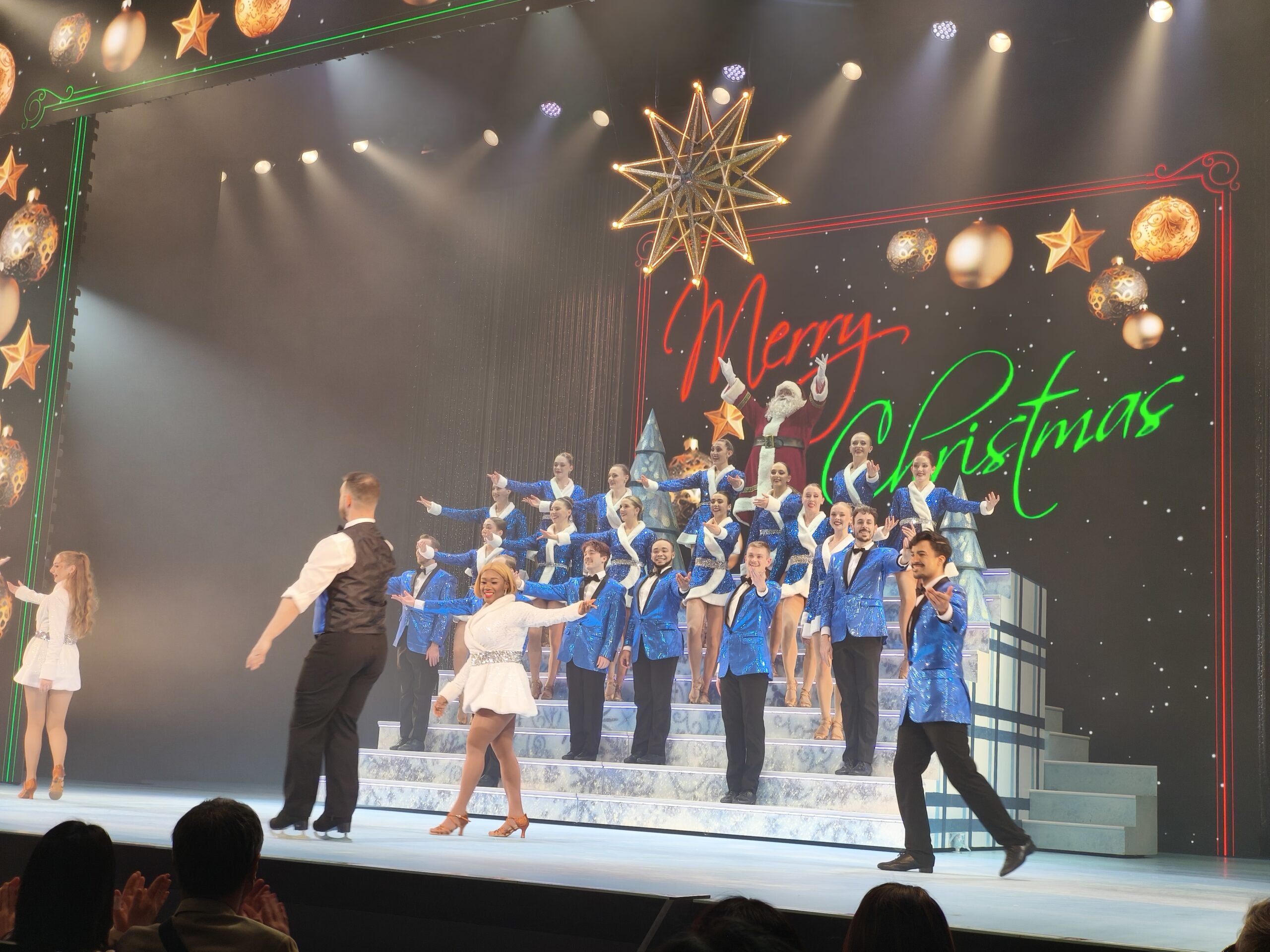 前列5列目で大迫力を楽しめました。歌手が5人、ダンサーが19人で、前半45分、後半50分のステージでクリスマスソングを歌い、踊り、幸せな気分になりました。