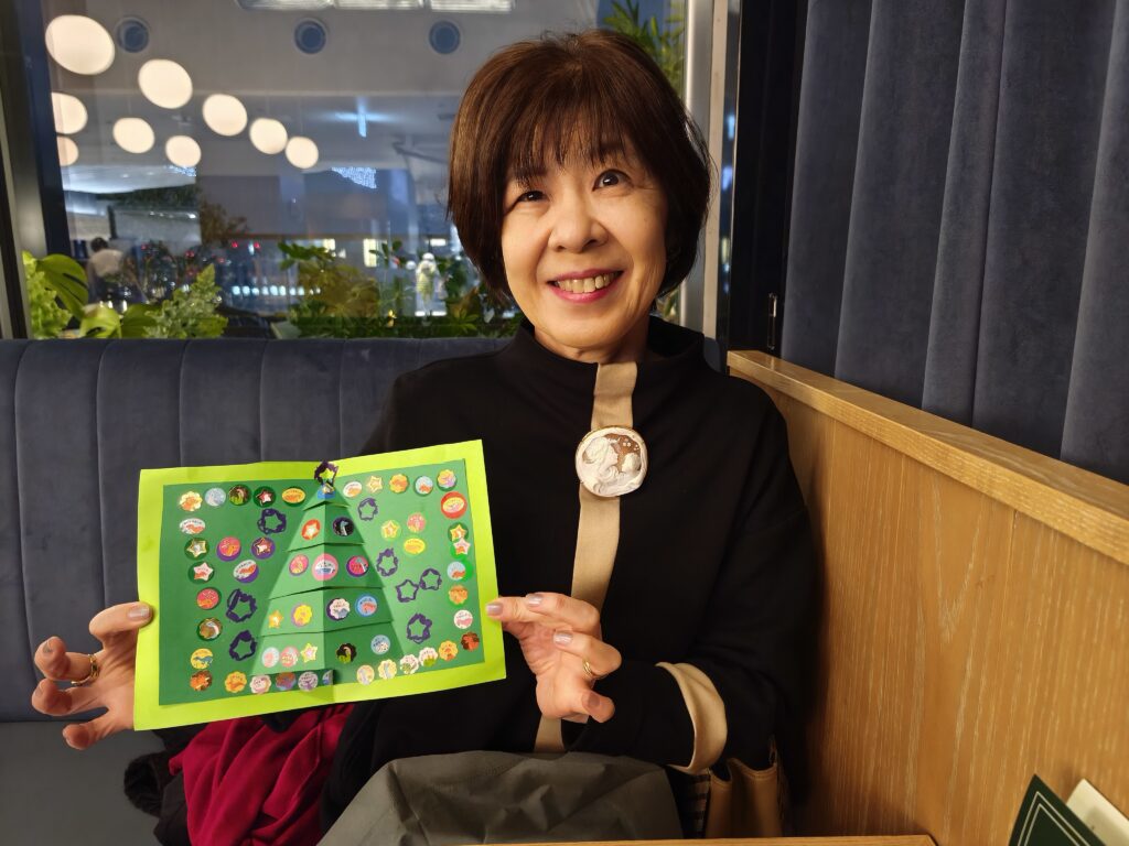 はるくん手製の開く立体クリスマスカードをもらって、じいじ、ばあばは感激です。