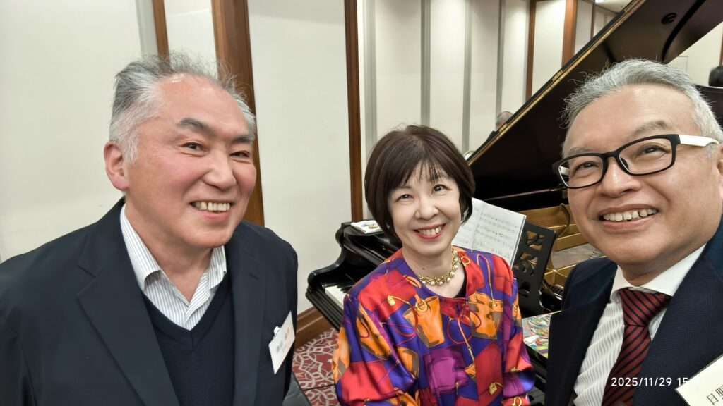 一橋大学卒業45周年会 如水会館 音楽関連 X Facebook はてブ Pocket LINE コピー 2025.12.02 55年卒業の45周年会が如水会館で開催されました。家内がショパンの大ポロネーズを演奏しました。