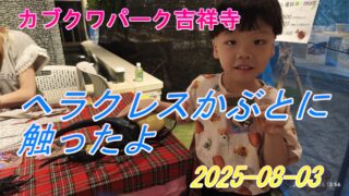 国内旅行 カブクワパーク吉祥寺でヘラクレスオオカブトを触ったよ。 今日は俺のイタリアンでランチの後、吉祥寺アトレで開催されていたカブクワパークに入りました。ヘラクレスオオカブトやコーカサスオオカブトにたっぷり触れて、楽しかったです。 じいじが一番楽しんでいた、と言われました。 2025.08.11 国内旅行