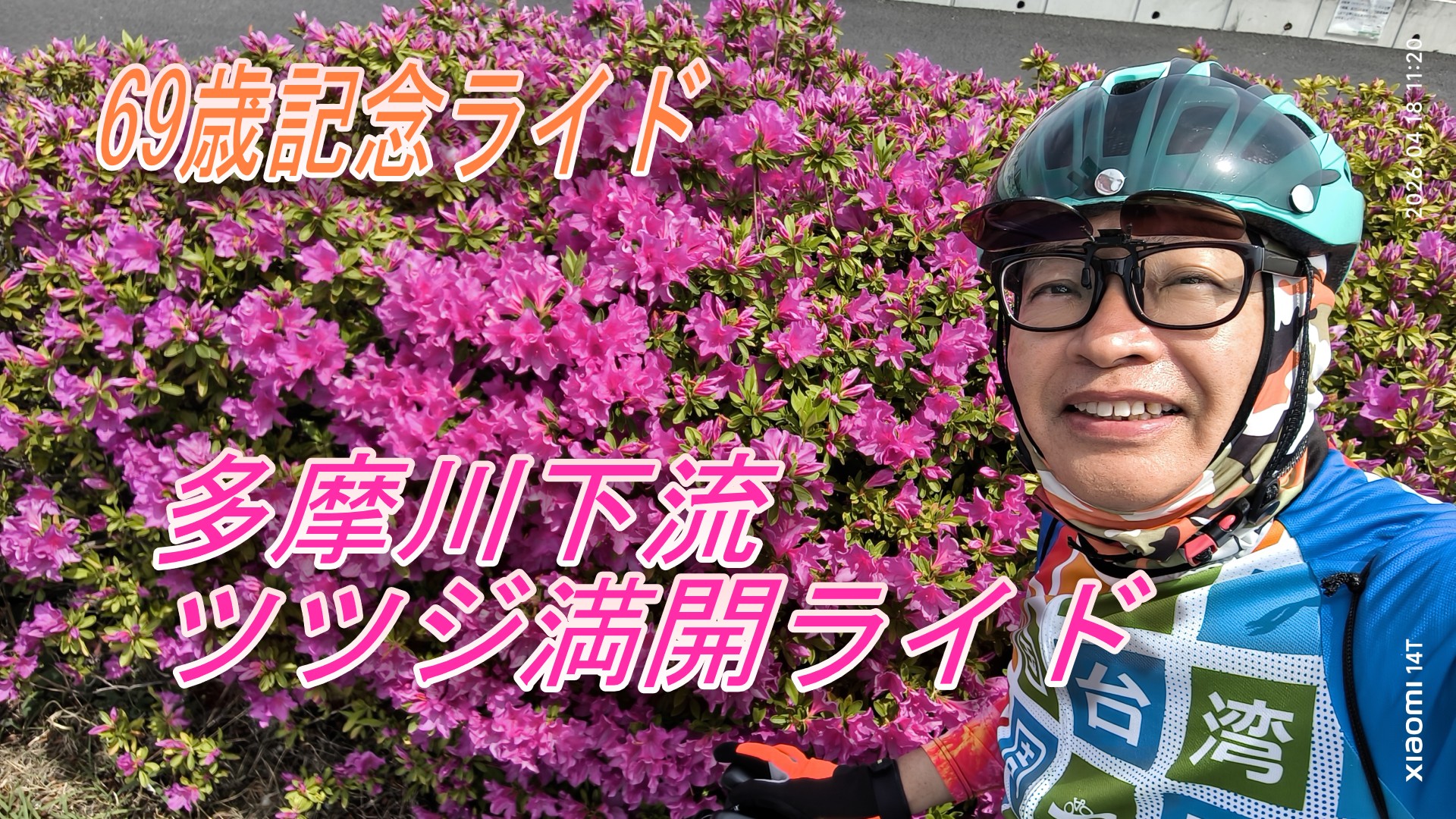 69歳記念として、多摩川下流を走ります。ツツジが満開でした。 気温21℃の快晴で、この日に走らなければいつ走るというぐらいのサイクリング日和でした。